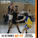 Au tour des garçons de rentrer dans l’arène face à l’Auvergne Rhône Alpes ! On sent nos franciliens légèrement tendu en ce début de match. Ils perdent le premier quart-temps 20-24. Ils reviennent sur le terrain avec d’autres intentions et ne laissent plus aucune chance aux adversaires de développer leur jeu ! L’écart se creuse rapidement et les coéquipiers de Clovis Gaduel (blessé) se mettent à l’abri en jouant sur leurs points forts : défense solide et projection vers l’avant. Le dernier quart-temps est une formalité et toute la délégation Ile de France peut exulter ! Sur le score de 76-52, la sélection masculine permet à notre Ligue de réalisé le doublé !