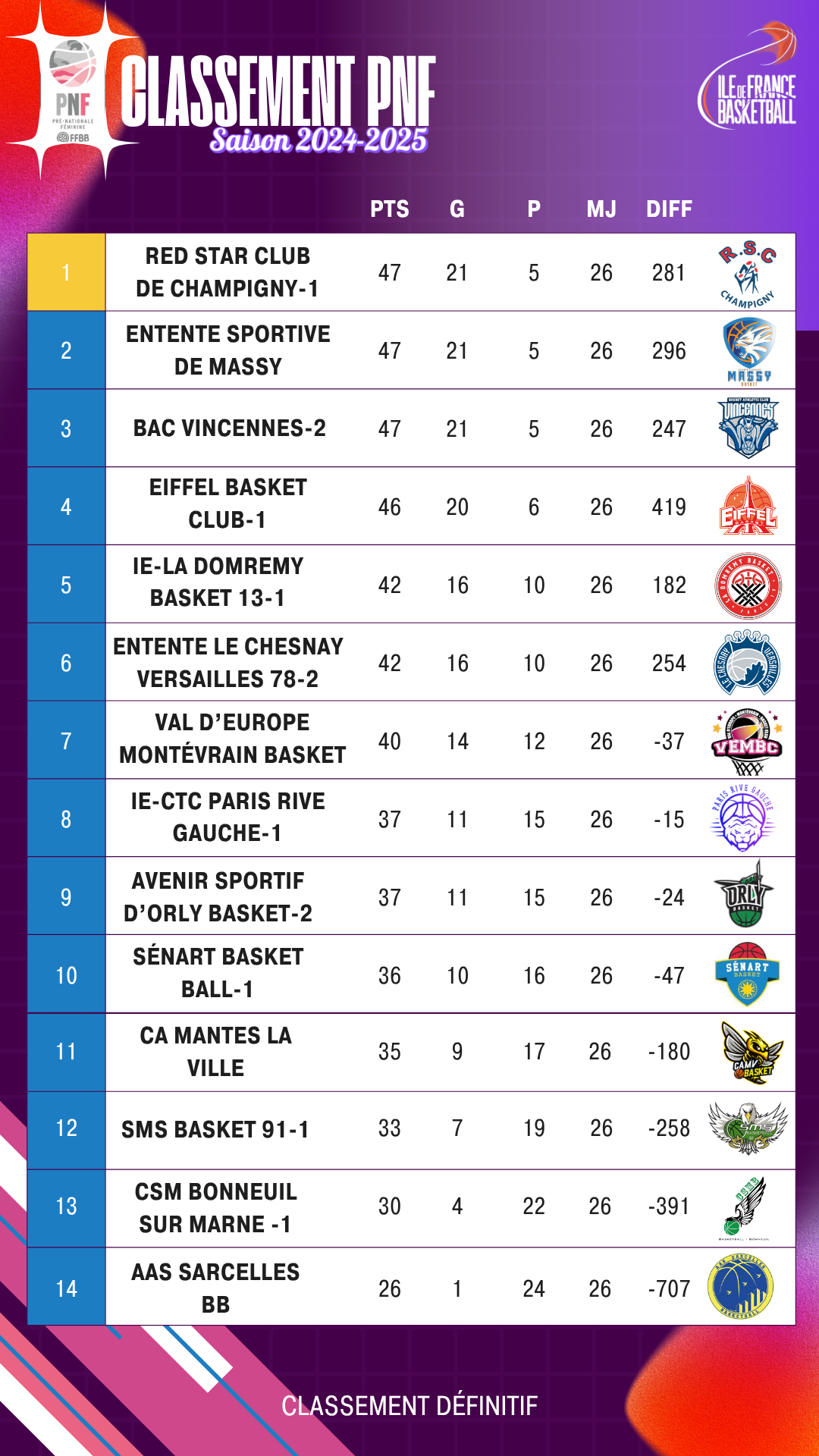 Le Classement des championnats PNF & PNM saison 2024-2025
