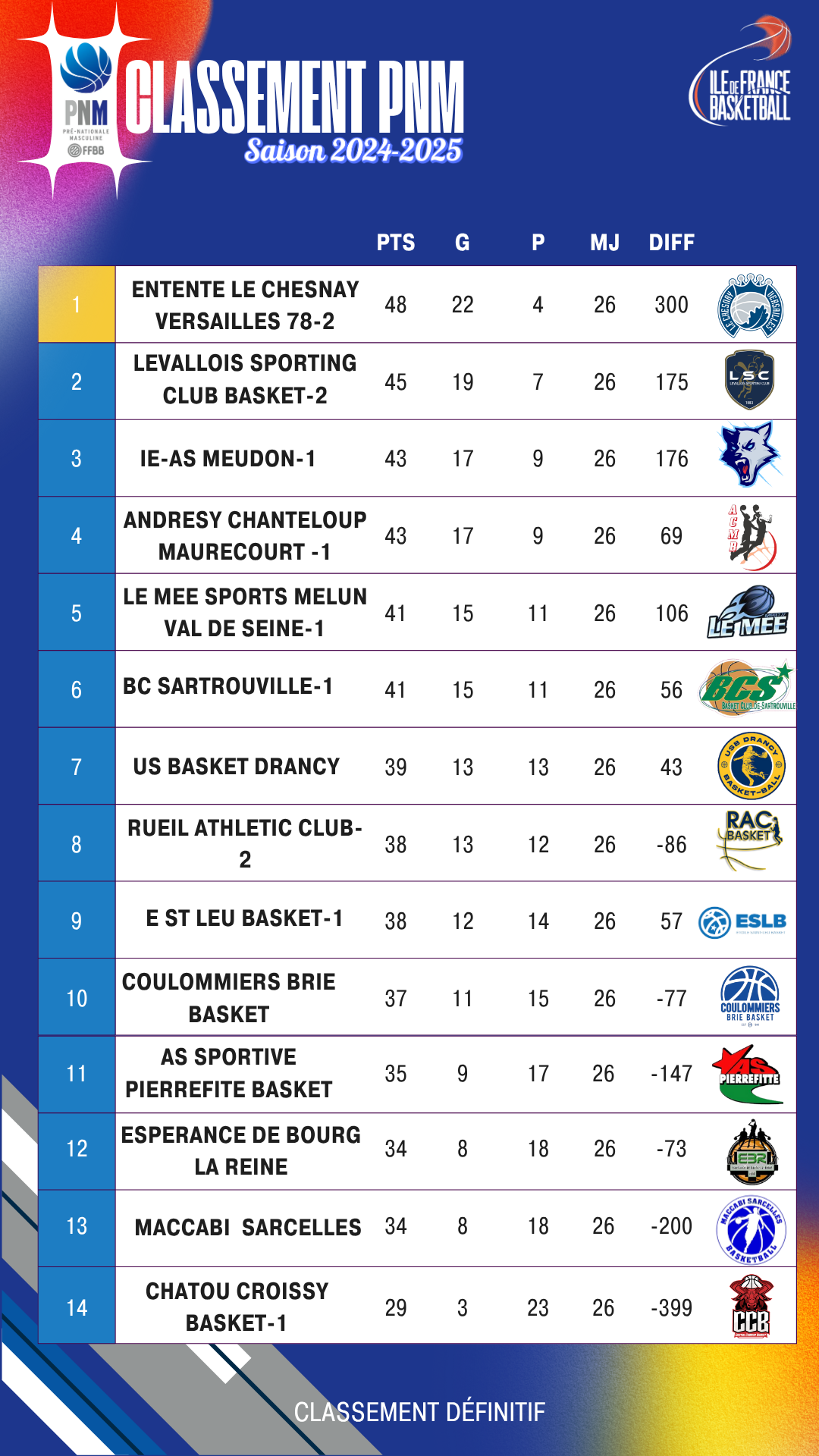 Dans la division masculine (PNM), c’est l’Entente Le Chesnay-Versailles 78 qui s’est hissée au sommet, décrochant le titre de champion Île-de-France. L’équipe a démontré une régularité exemplaire et un collectif solide pour dominer la compétition.