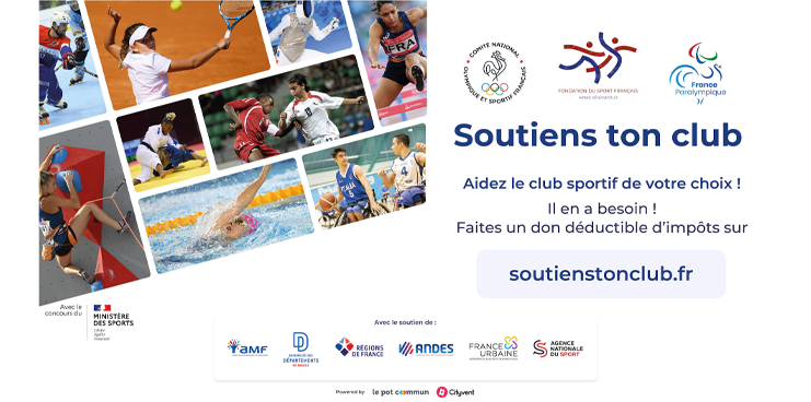 Avec le soutien du Ministère des Sports, la Fondation du Sport Français, le Comité National Olympique et Sportif Français, le Comité Paralympique et Sportif Français, l’Agence Nationale du Sport et les associations représentant les collectivités locales, lancent l’opération solidaire « Soutiens Ton Club », une plateforme de dons au bénéfice des clubs sportifs.