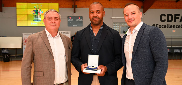 Mis à l’honneur à l’occasion des Finales de NM3 / NF3 organisées à Eaubonne, l’arbitre francilien a reçu la médaille d’or de la Ligue, plus haute distinction décernée au niveau régional.