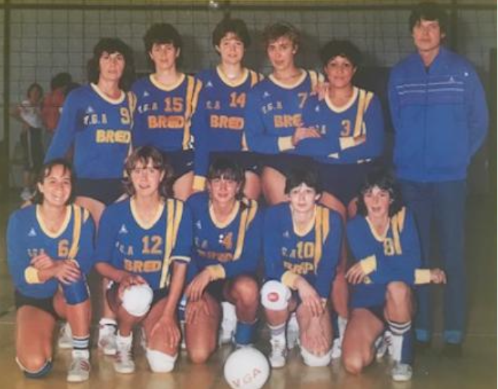 L’équipe de la V.G.A Saint-Maur qualifiée pour la Coupe d’Europe des vainqueurs de Coupe. Isabelle RAT n°14, Volley-Ball V.G.A Saint-Maur, saison 1984- 1985.