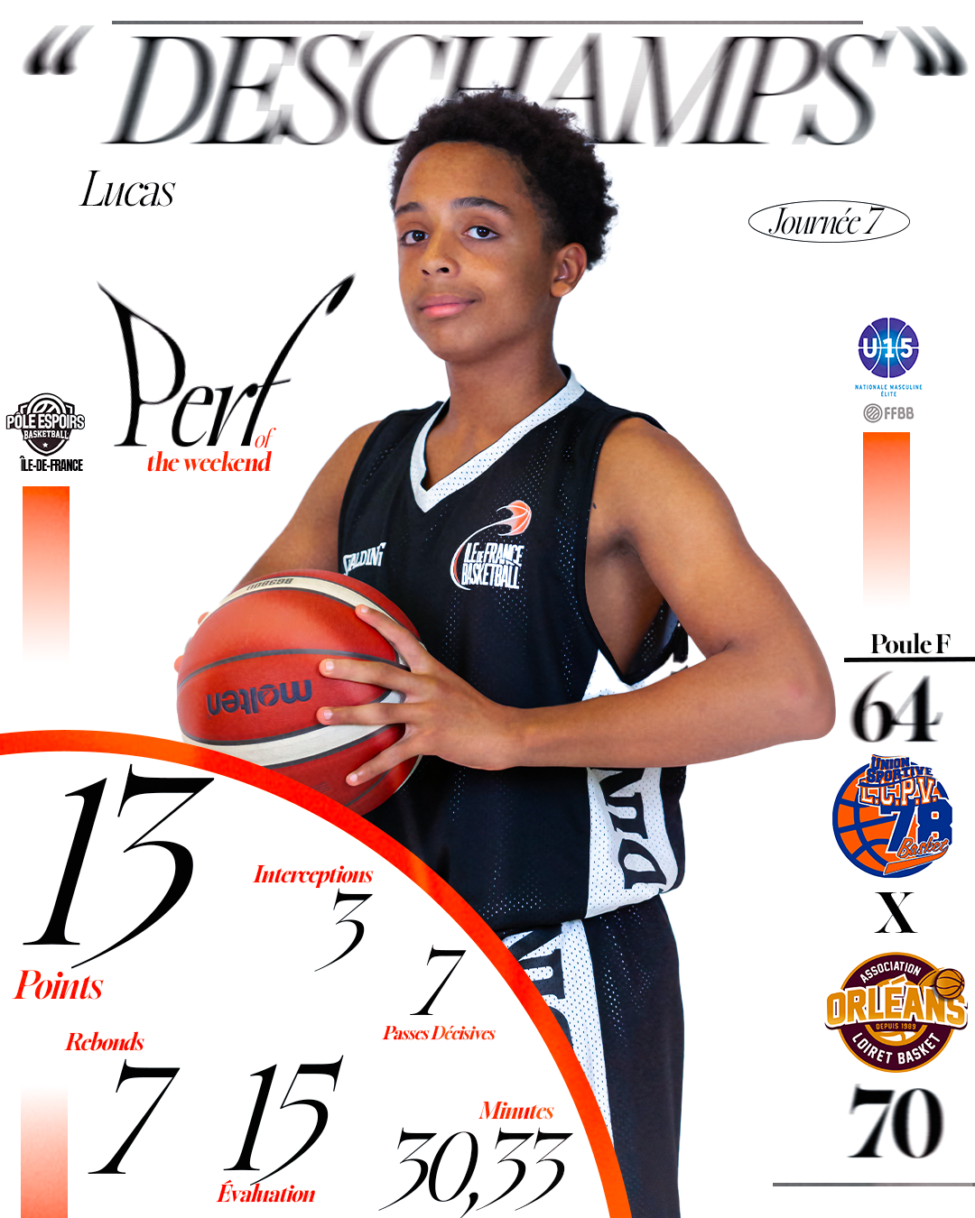 Lucas Deschamps a livré une prestation complète, mêlant organisation et activité sur l’ensemble du match. En 30 minutes et 33 secondes, il a cumulé :