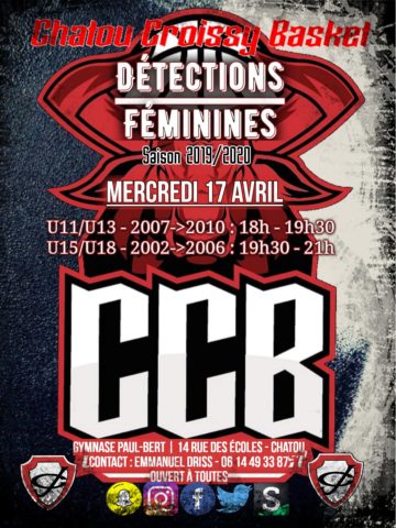 Joueuses U11/U13/U15/U17 - Venez tenter votre chance au Chatou Croissy Basket le Mercredi 17 avril 2019 entre 16h30 et 19h30 au gymnase Paul Bert à Chatou !