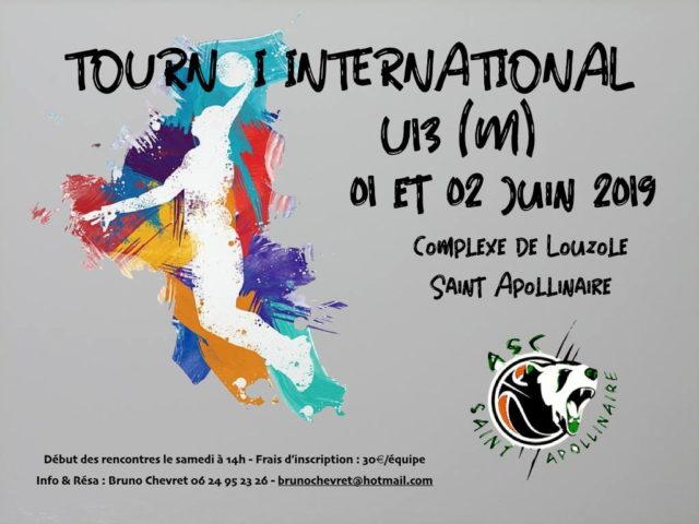 L’ASC Saint-Apollinaire Basket (F-21850, près de Dijon) organisera les 01er et 02 juin 2019 la 2ème édition de son Tournoi International Jeunes U13(M).