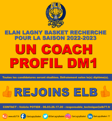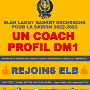 ELAN LAGNY BASKET recrute un coach pour encadrer une équipe DM1.