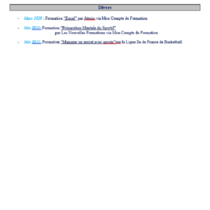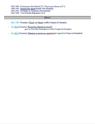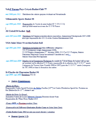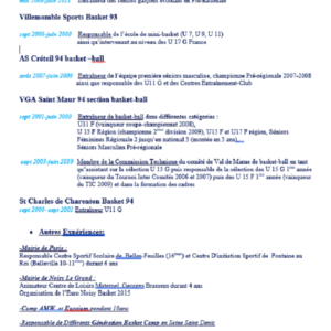 Expérience très enrichissante en CDI depuis 14ans, divers projets mis en place: formation académique, école d'arbitrage, stages, camps d'exposition pour des projets de vie, suivi de formateur de joueur.