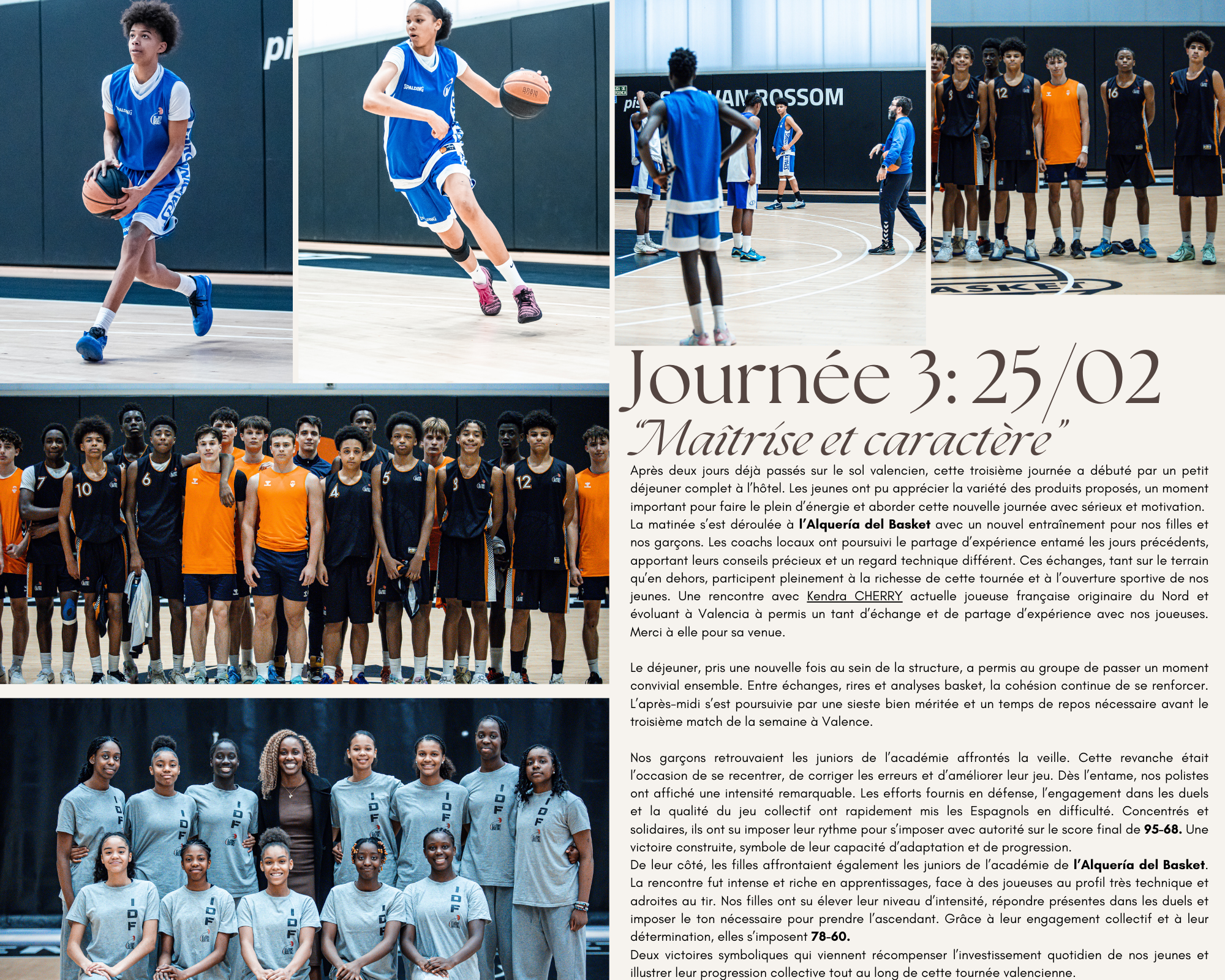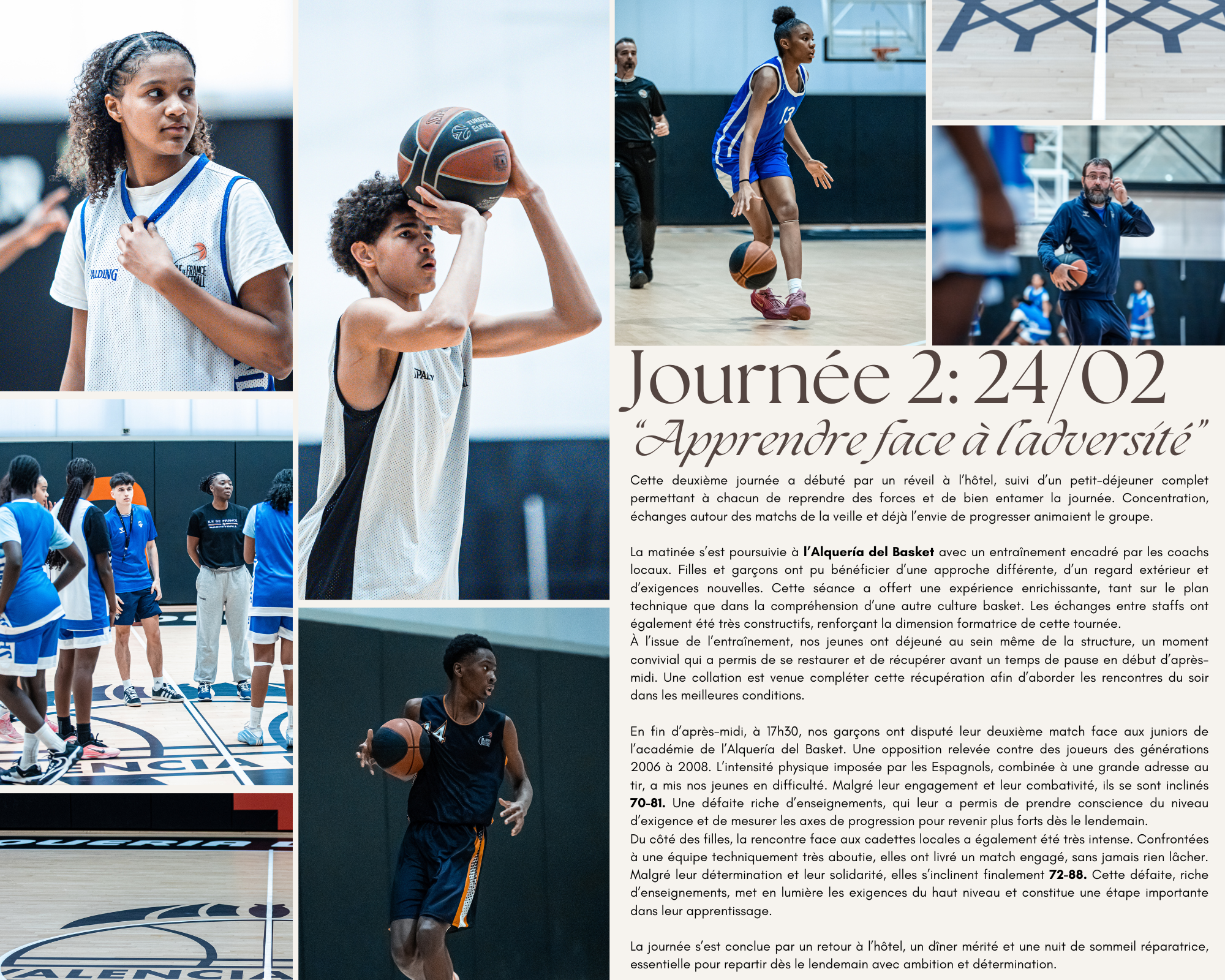 Au fil des journées passées à l’Alquería del Basket, ce carnet met en lumière l’engagement, la progression et l’état d’esprit de nos jeunes face à une culture basket différente et à un niveau d’exigence élevé.
