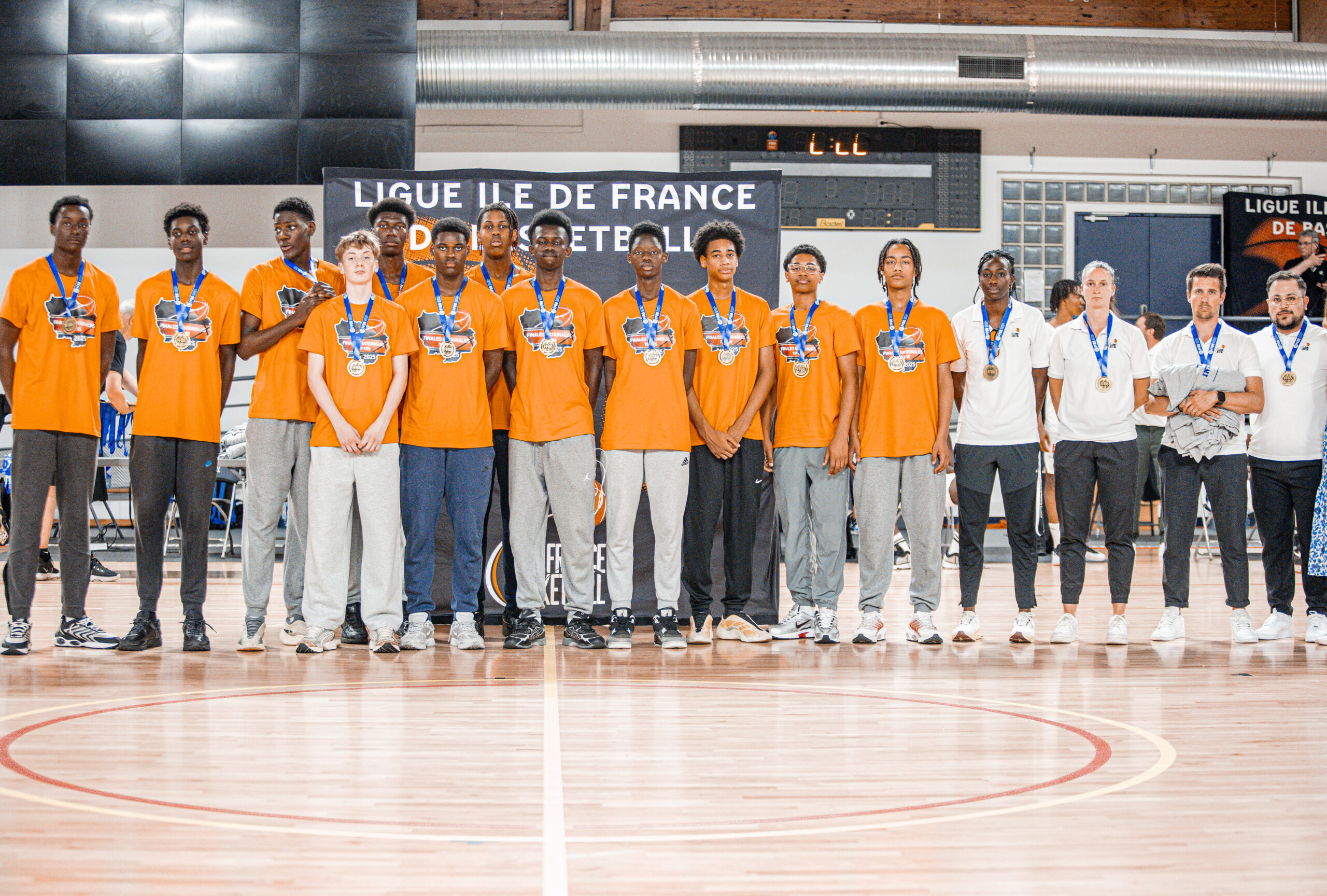 Notre sélection régionale masculine U15 a livré un tournoi solide. Après un beau parcours en phase de poules, les Franciliens se hissent en demi-finale où ils affrontent l’équipe des Potentiels, réputée pour sa rigueur défensive. Malgré un match accroché, nos jeunes s’inclinent de justesse sur le score de 54-60.